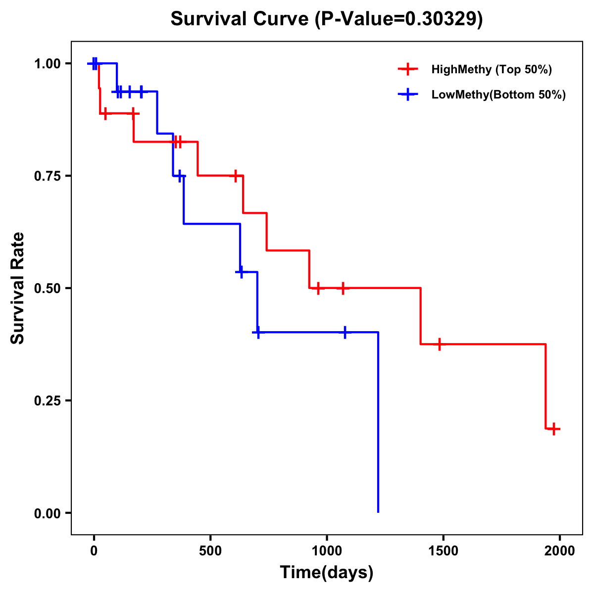 | Survival Curve of Biliary tract Cancer of Expression | Survival Curve of Biliary tract Cancer of Methylation | ||