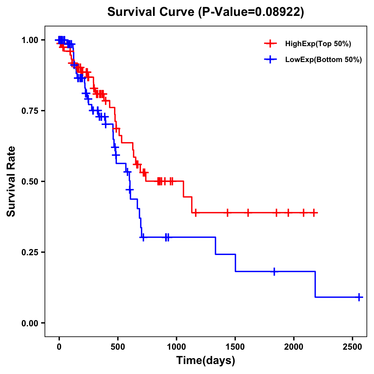 | Survival Curve of Pancreatic Cancer of Expression | Survival Curve of Pancreatic Cancer of Methylation | ||