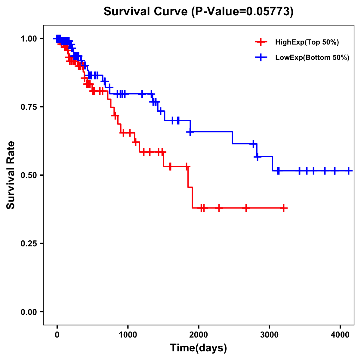 | Survival Curve of Colon Cancer on Expression Level |