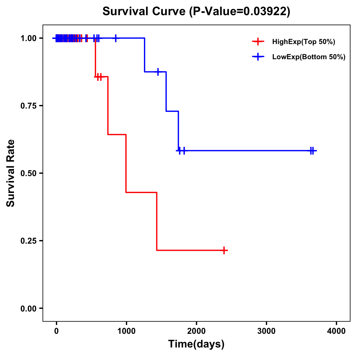 Survival Curve of Rectum Cancer on Expression Level |