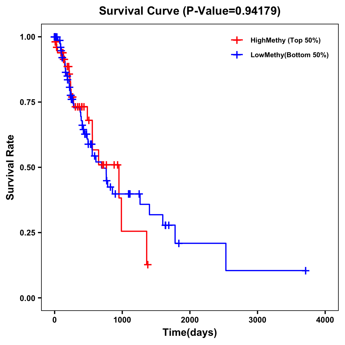 | Survival Curve of Esophagus Cancer of Expression | Survival Curve of Esophagus Cancer of Methylation | ||