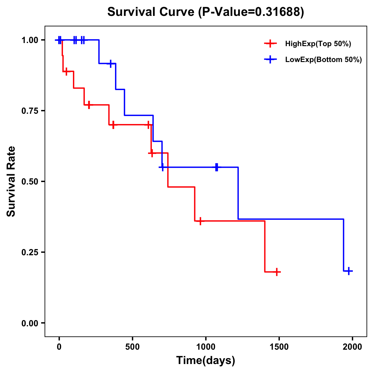 | Survival Curve of Biliary tract Cancer of Expression | Survival Curve of Biliary tract Cancer of Methylation | ||