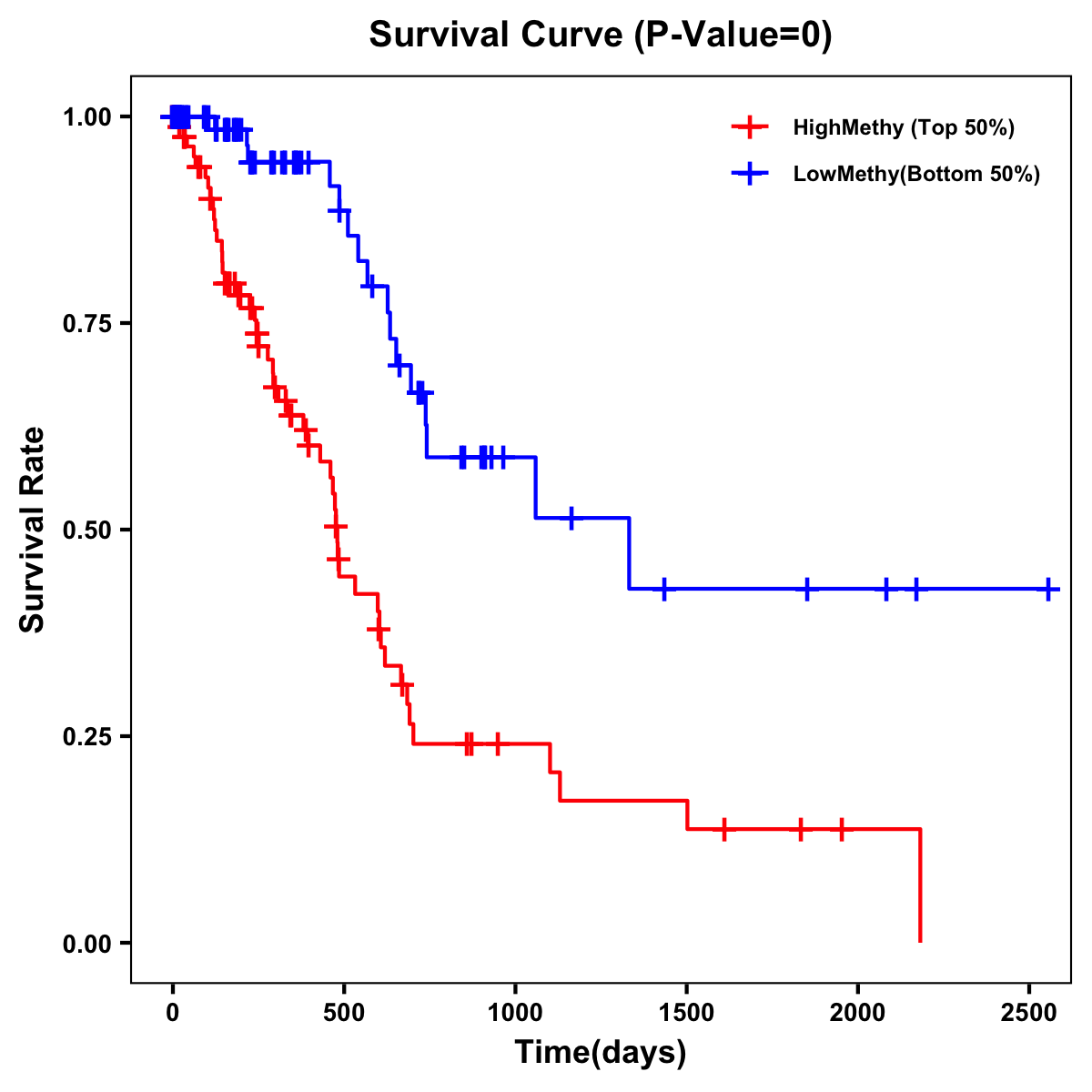 | Survival Curve of Pancreatic Cancer of Expression | Survival Curve of Pancreatic Cancer of Methylation | ||