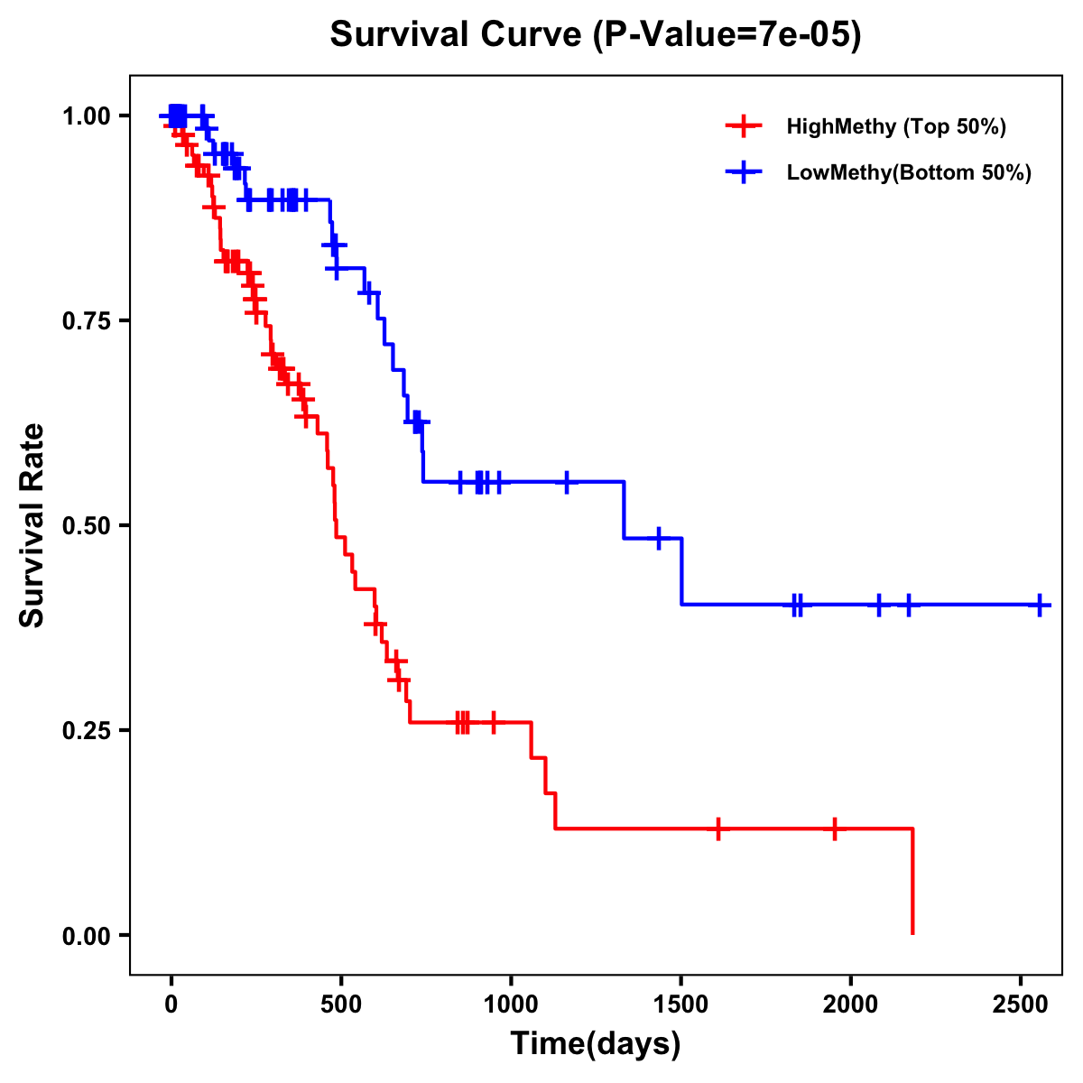 | Survival Curve of Pancreatic Cancer of Expression | Survival Curve of Pancreatic Cancer of Methylation | ||