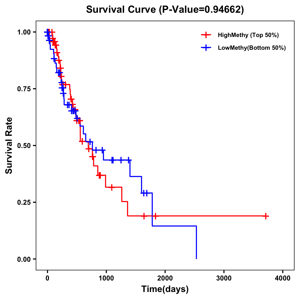| Survival Curve of Esophagus Cancer of Expression | Survival Curve of Esophagus Cancer of Methylation | ||