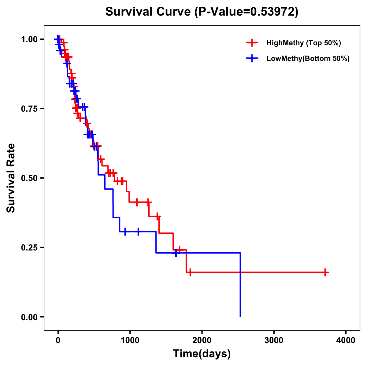 | Survival Curve of Esophagus Cancer of Expression | Survival Curve of Esophagus Cancer of Methylation | ||