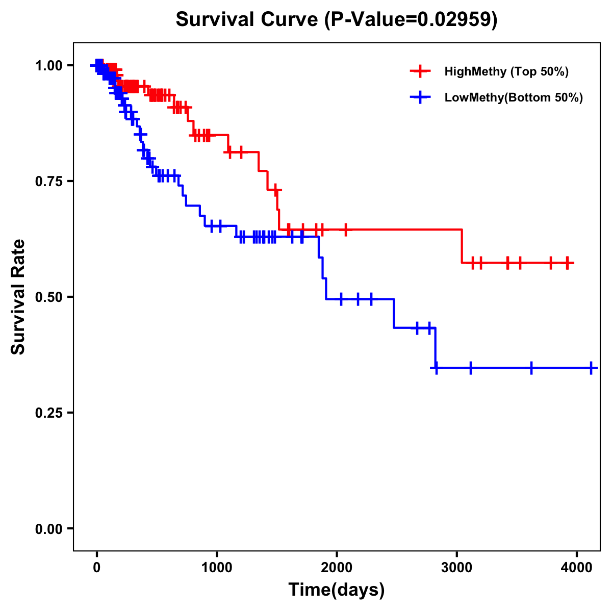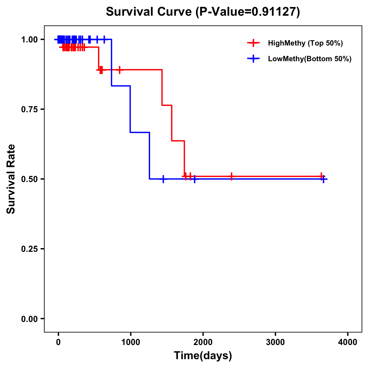 | Survival Curve of Colon Cancer on Methylation Level |