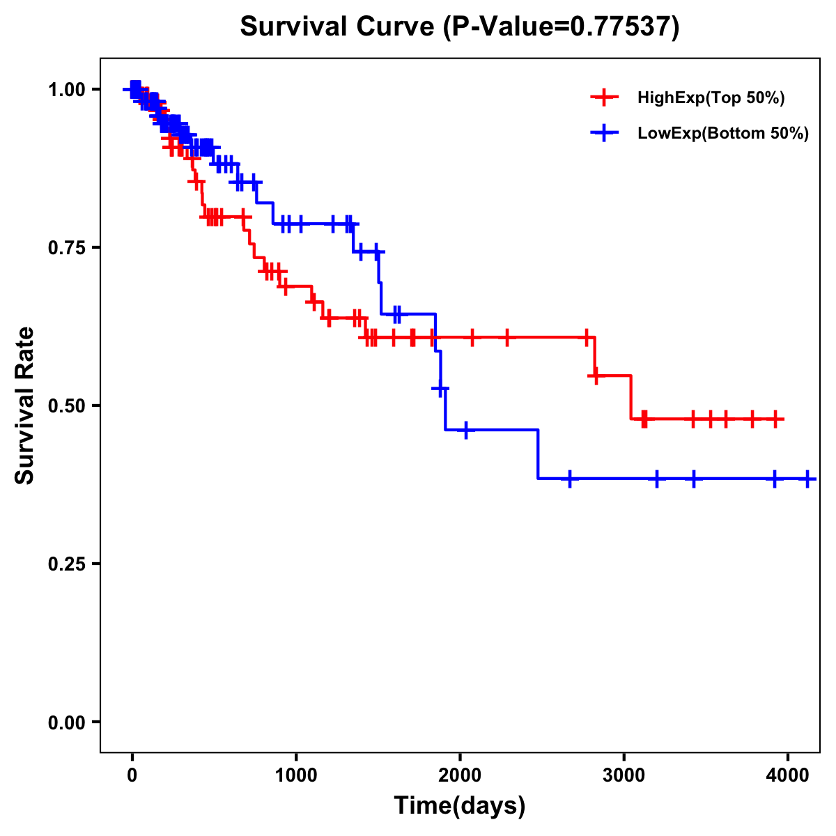 | Survival Curve of Colon Cancer on Expression Level |