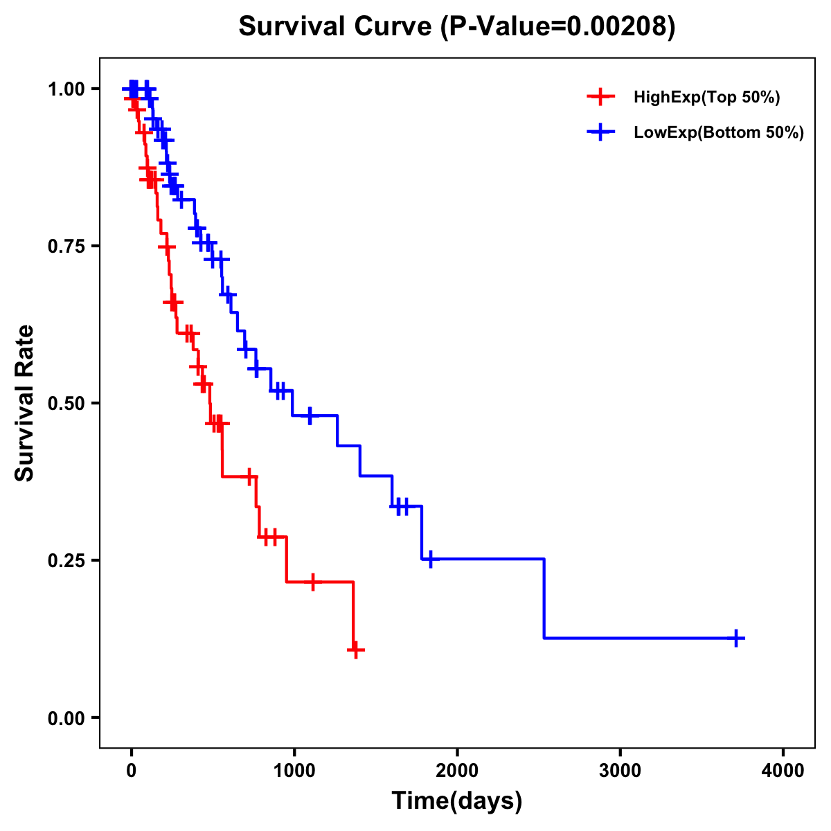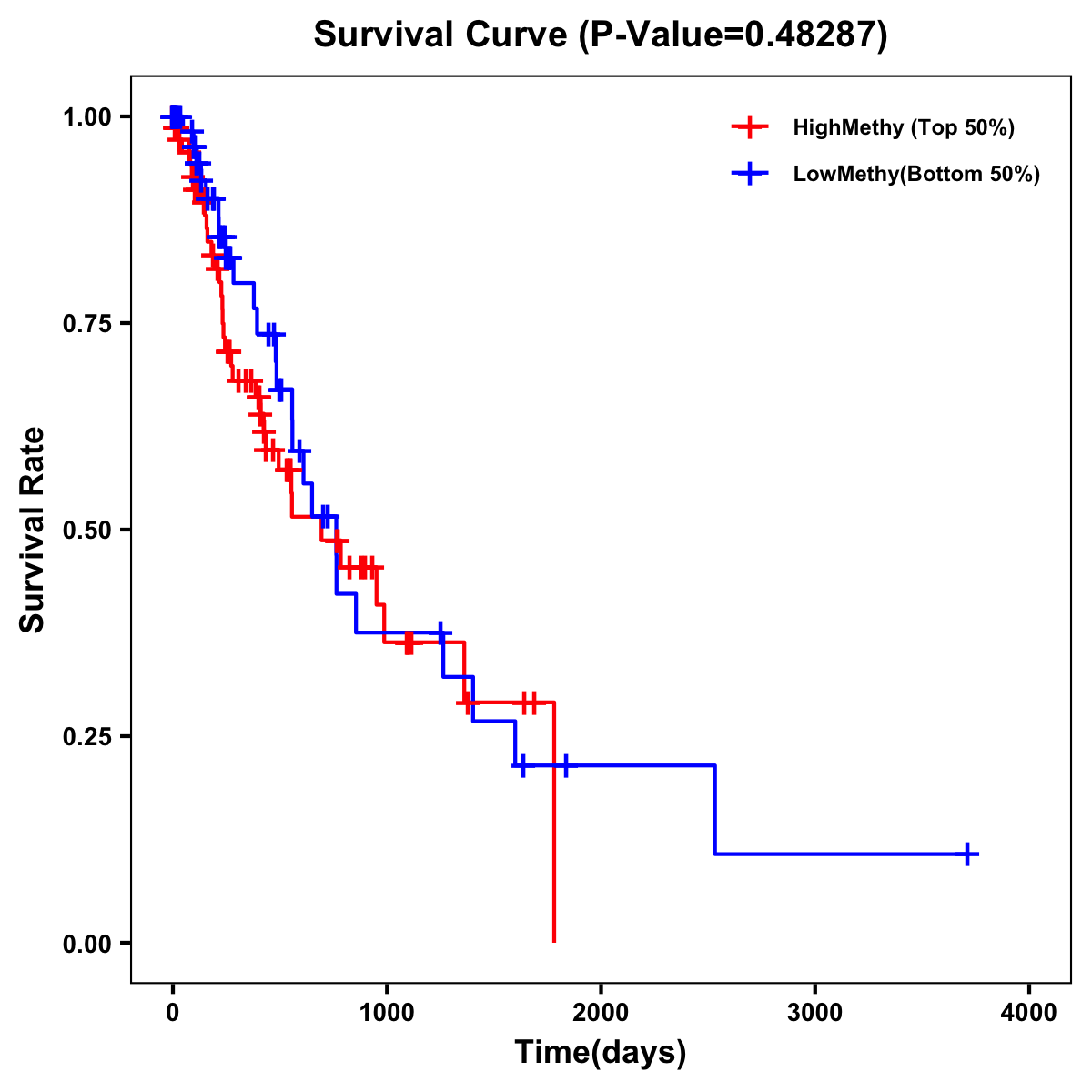 | Survival Curve of Esophagus Cancer of Expression | Survival Curve of Esophagus Cancer of Methylation | ||
