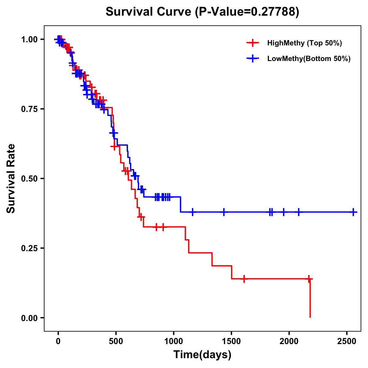 | Survival Curve of Pancreatic Cancer of Expression | Survival Curve of Pancreatic Cancer of Methylation | ||