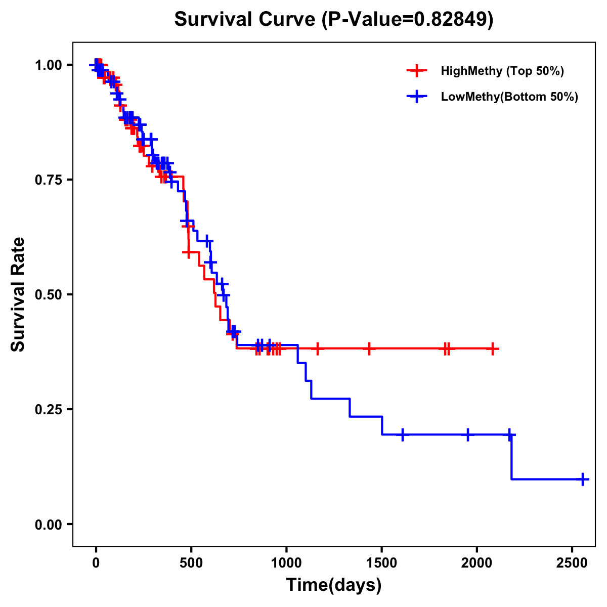 | Survival Curve of Pancreatic Cancer of Expression | Survival Curve of Pancreatic Cancer of Methylation | ||