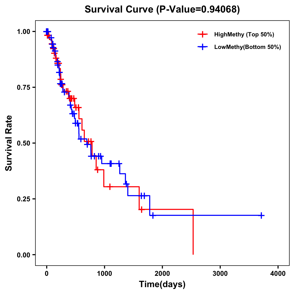 | Survival Curve of Esophagus Cancer of Expression | Survival Curve of Esophagus Cancer of Methylation | ||