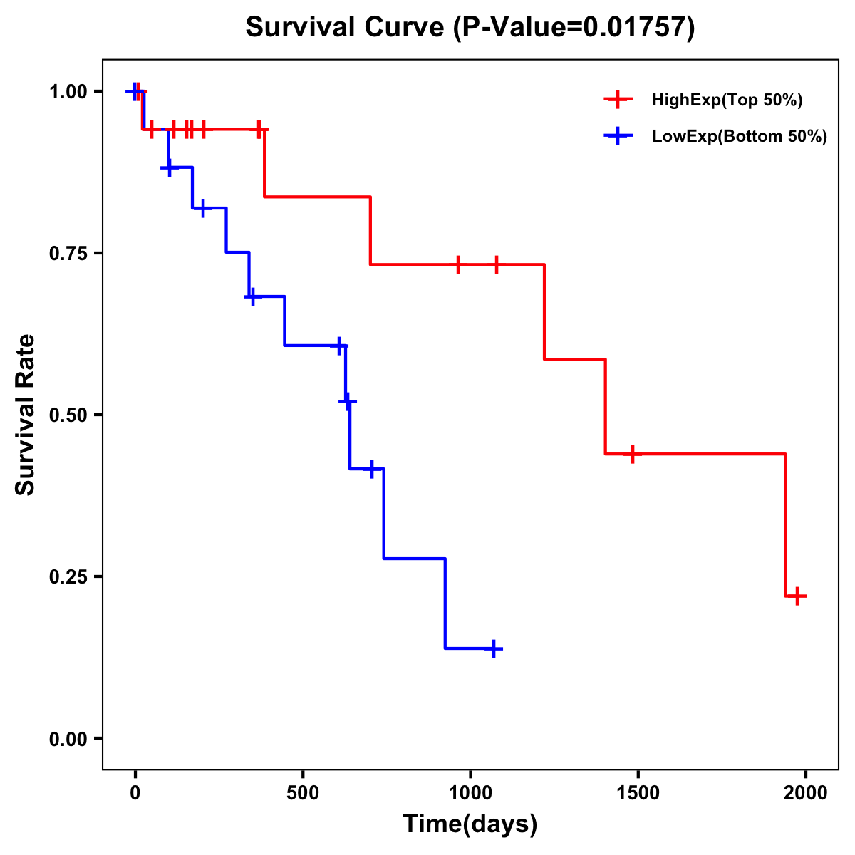 | Survival Curve of Biliary tract Cancer of Expression | Survival Curve of Biliary tract Cancer of Methylation | ||