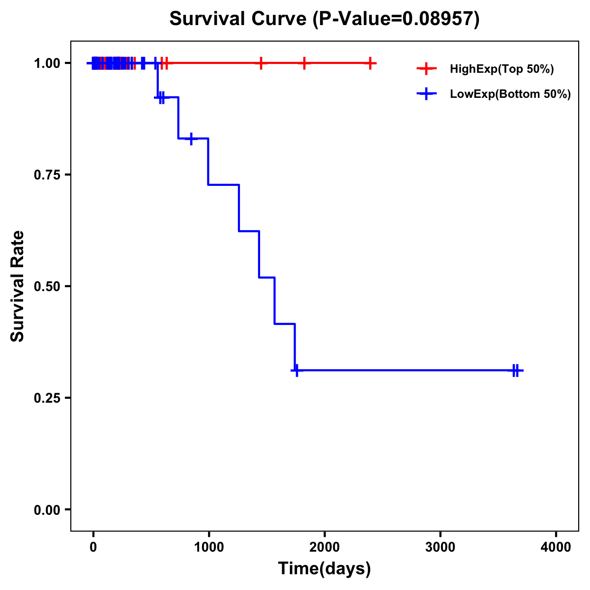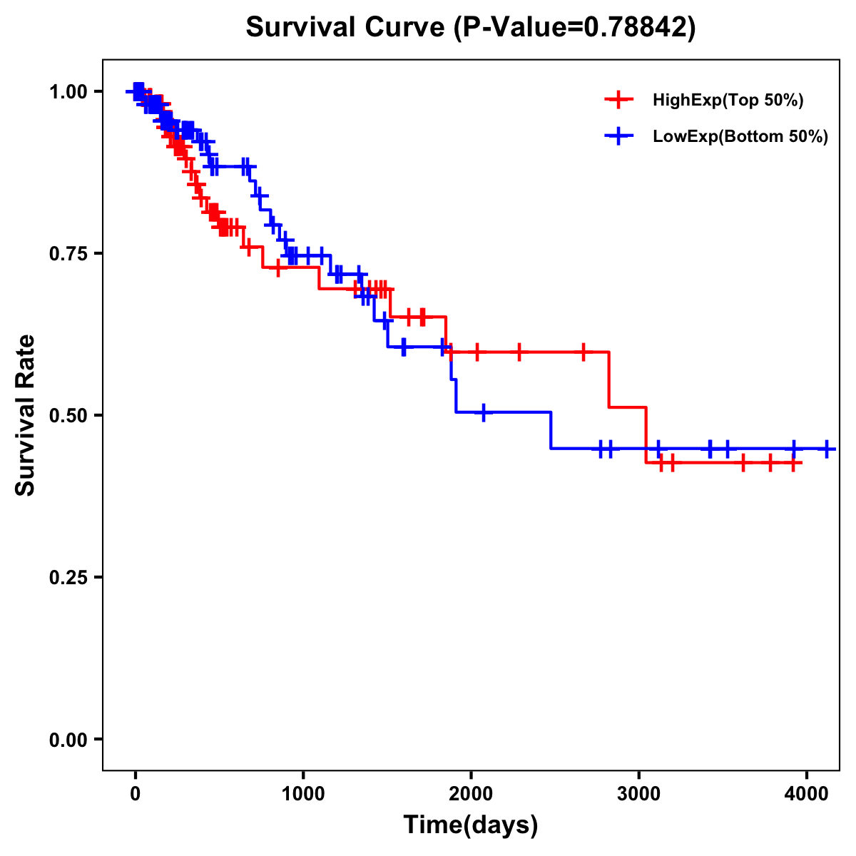 | Survival Curve of Colon Cancer on Expression Level |