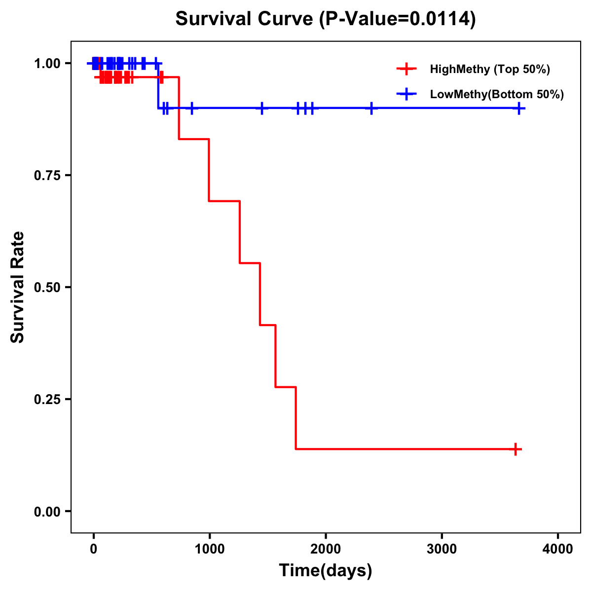 | Survival Curve of Colon Cancer on Methylation Level |