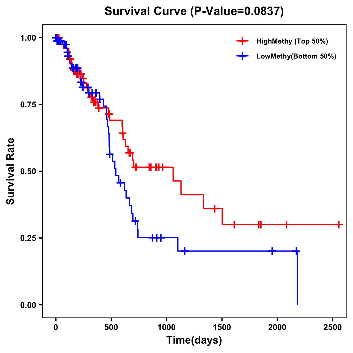 | Survival Curve of Pancreatic Cancer of Expression | Survival Curve of Pancreatic Cancer of Methylation | ||