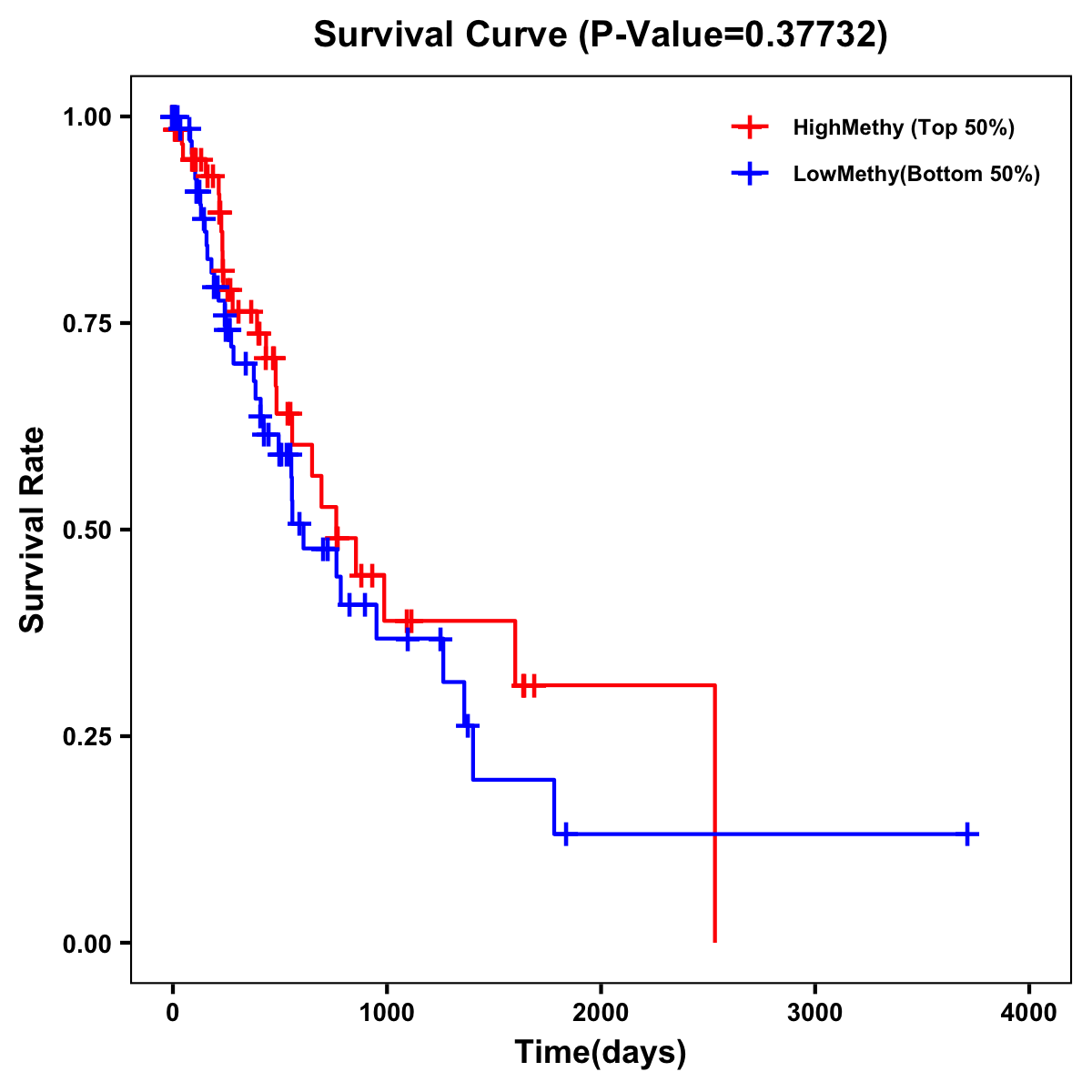 | Survival Curve of Esophagus Cancer of Expression | Survival Curve of Esophagus Cancer of Methylation | ||