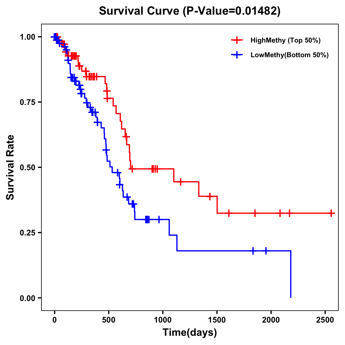 | Survival Curve of Pancreatic Cancer of Expression | Survival Curve of Pancreatic Cancer of Methylation | ||
