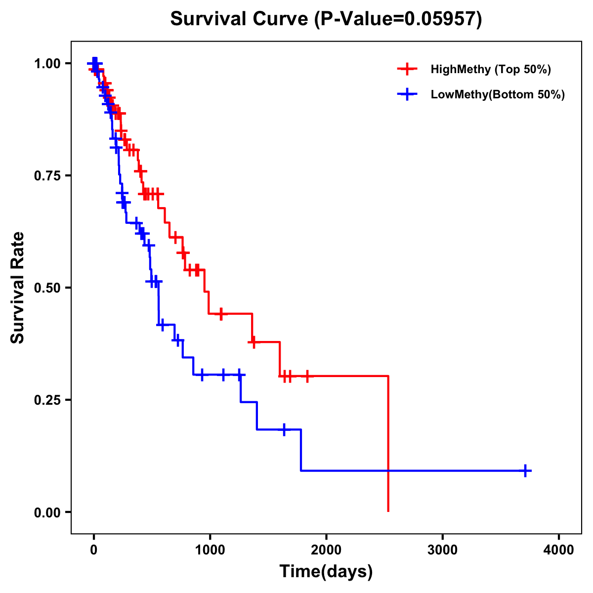 | Survival Curve of Esophagus Cancer of Expression | Survival Curve of Esophagus Cancer of Methylation | ||