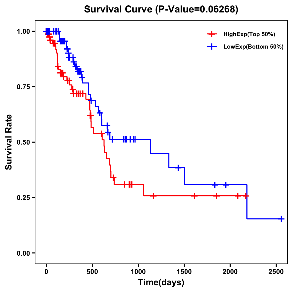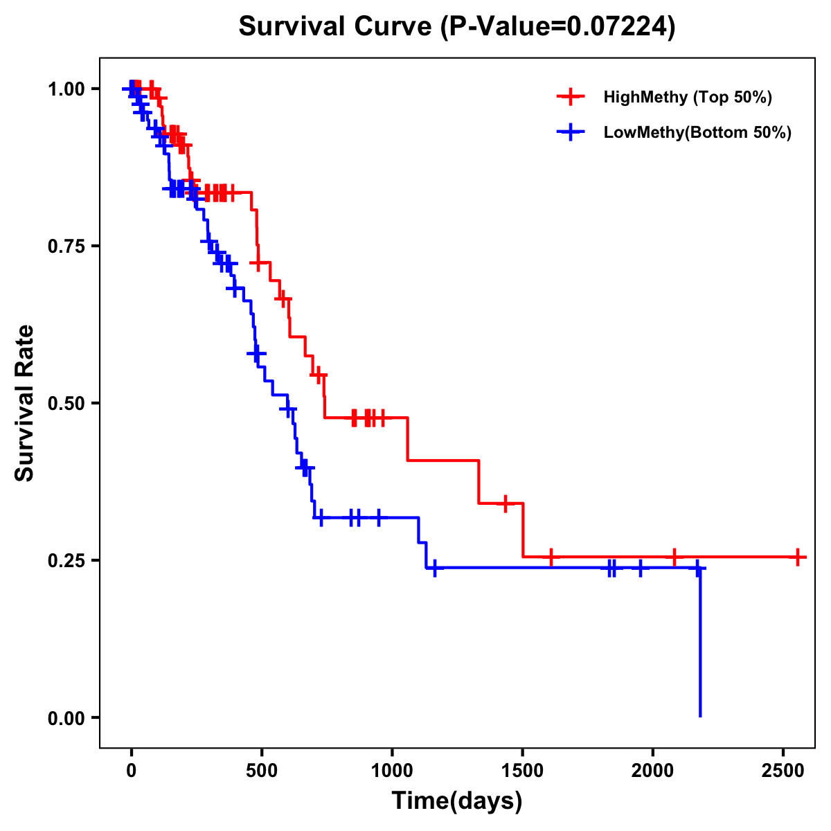 | Survival Curve of Pancreatic Cancer of Expression | Survival Curve of Pancreatic Cancer of Methylation | ||