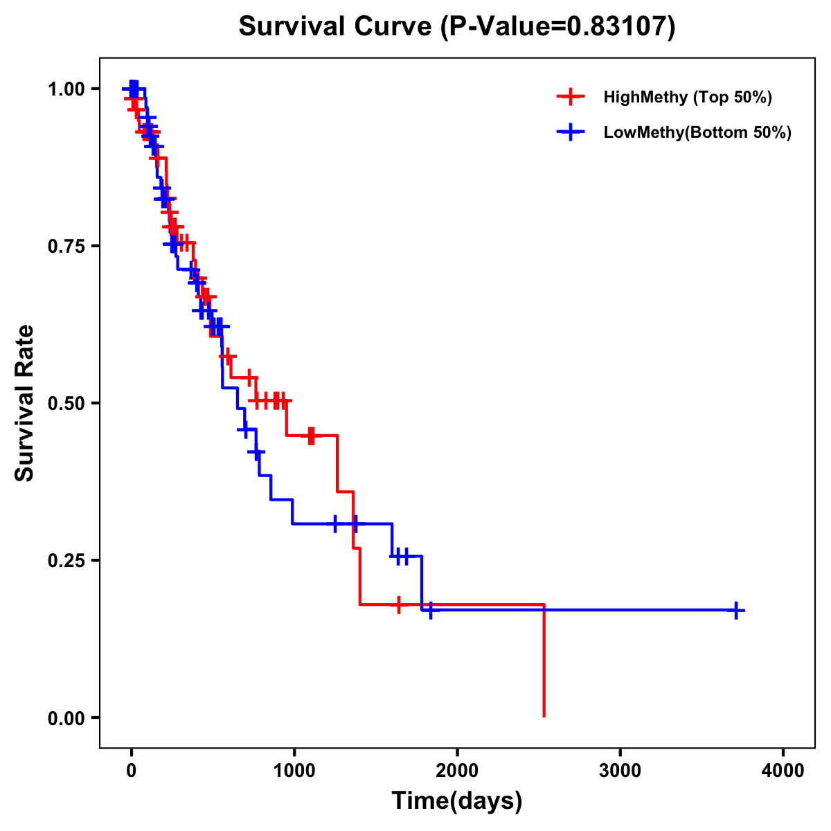 | Survival Curve of Esophagus Cancer of Expression | Survival Curve of Esophagus Cancer of Methylation | ||