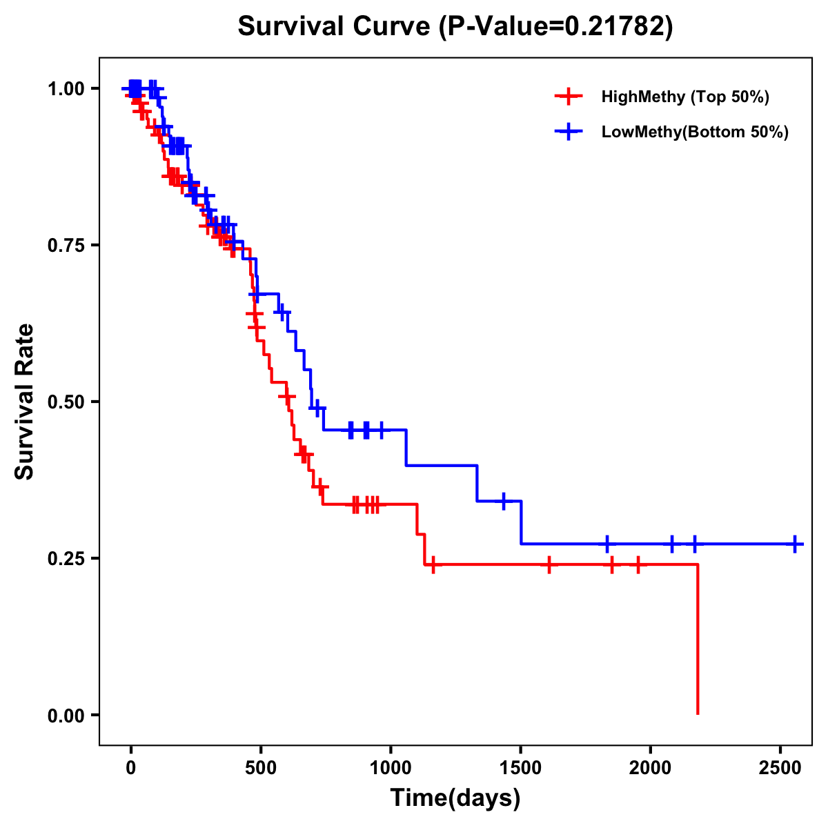 | Survival Curve of Pancreatic Cancer of Expression | Survival Curve of Pancreatic Cancer of Methylation | ||
