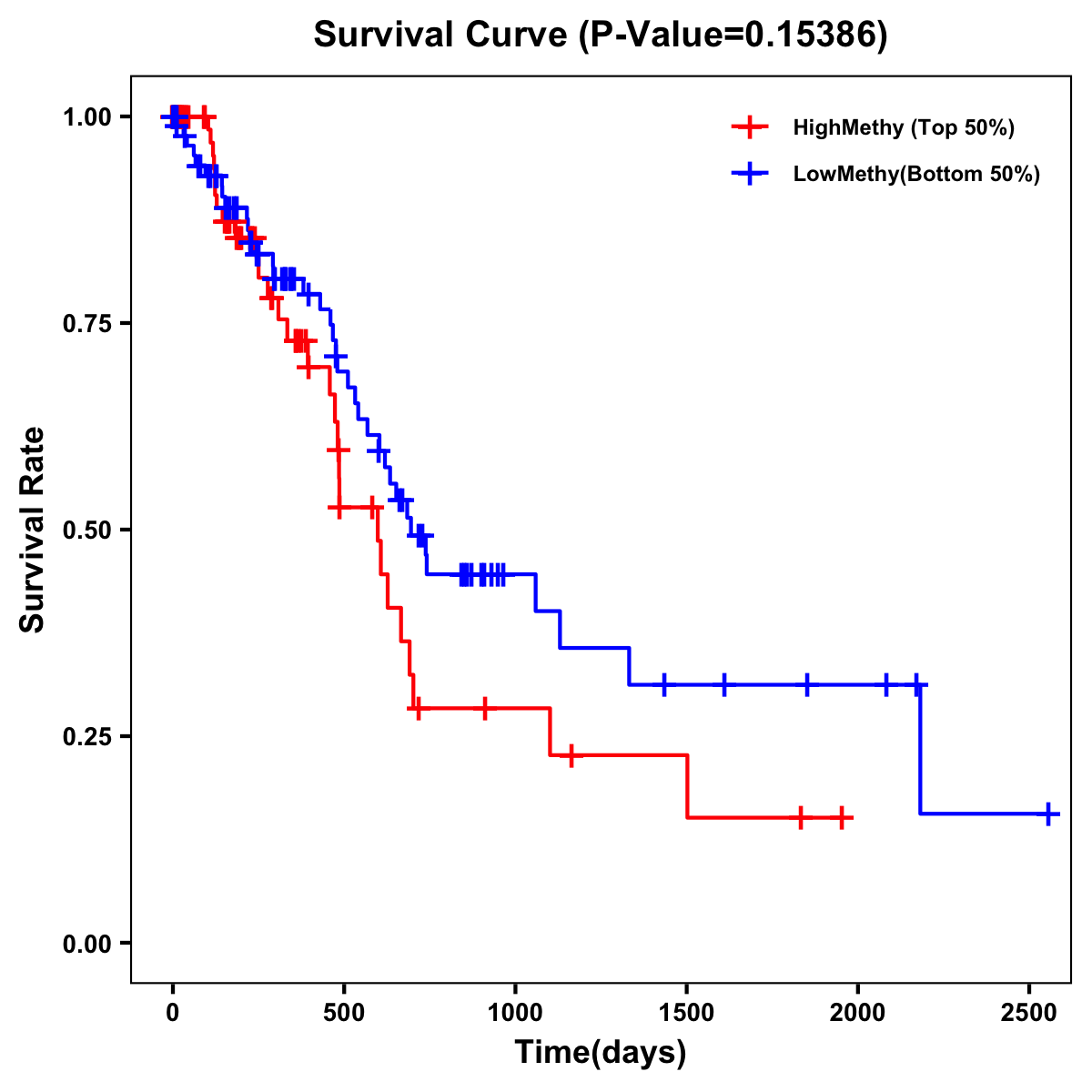 | Survival Curve of Pancreatic Cancer of Expression | Survival Curve of Pancreatic Cancer of Methylation | ||