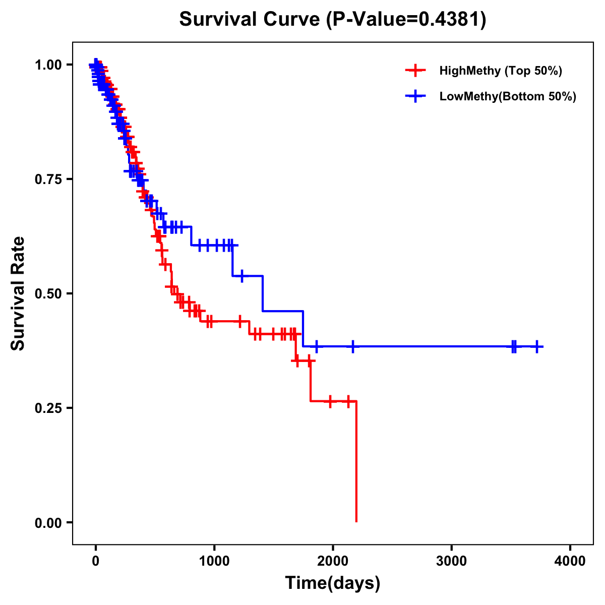 | Survival Curve of Stomach Cancer of Expression | Survival Curve of Stomach Cancer of Methylation | ||
