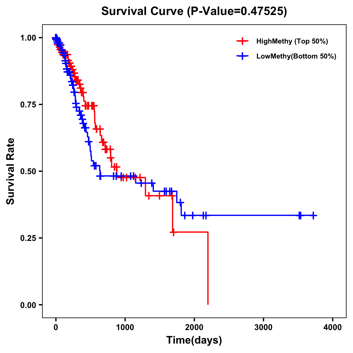 | Survival Curve of Stomach Cancer of Expression | Survival Curve of Stomach Cancer of Methylation | ||
