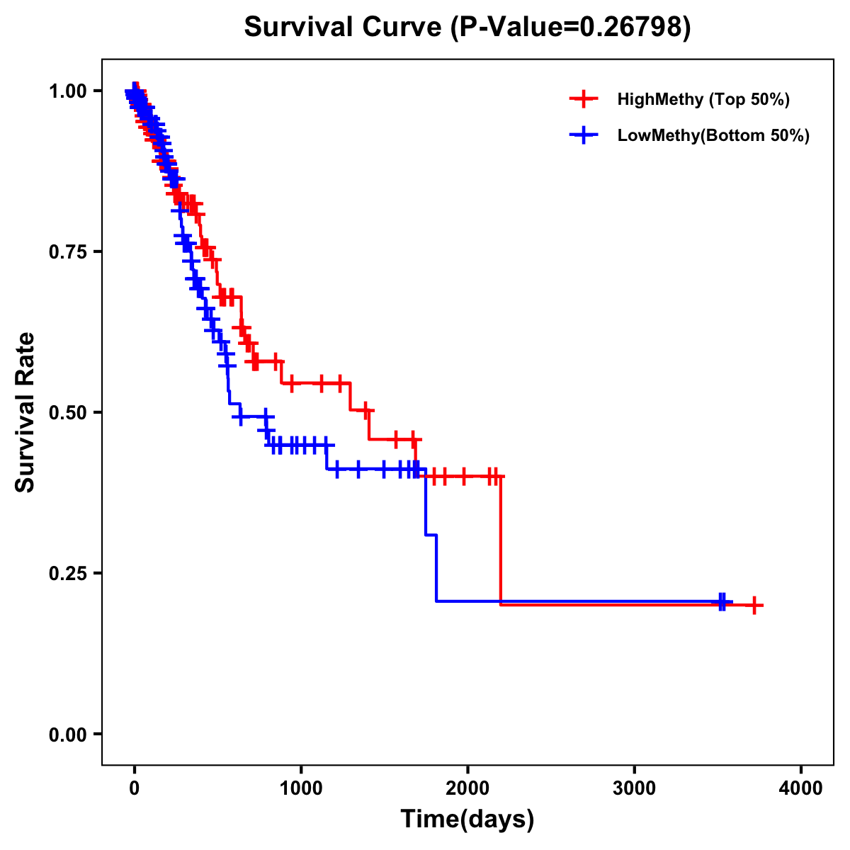 | Survival Curve of Stomach Cancer of Expression | Survival Curve of Stomach Cancer of Methylation | ||