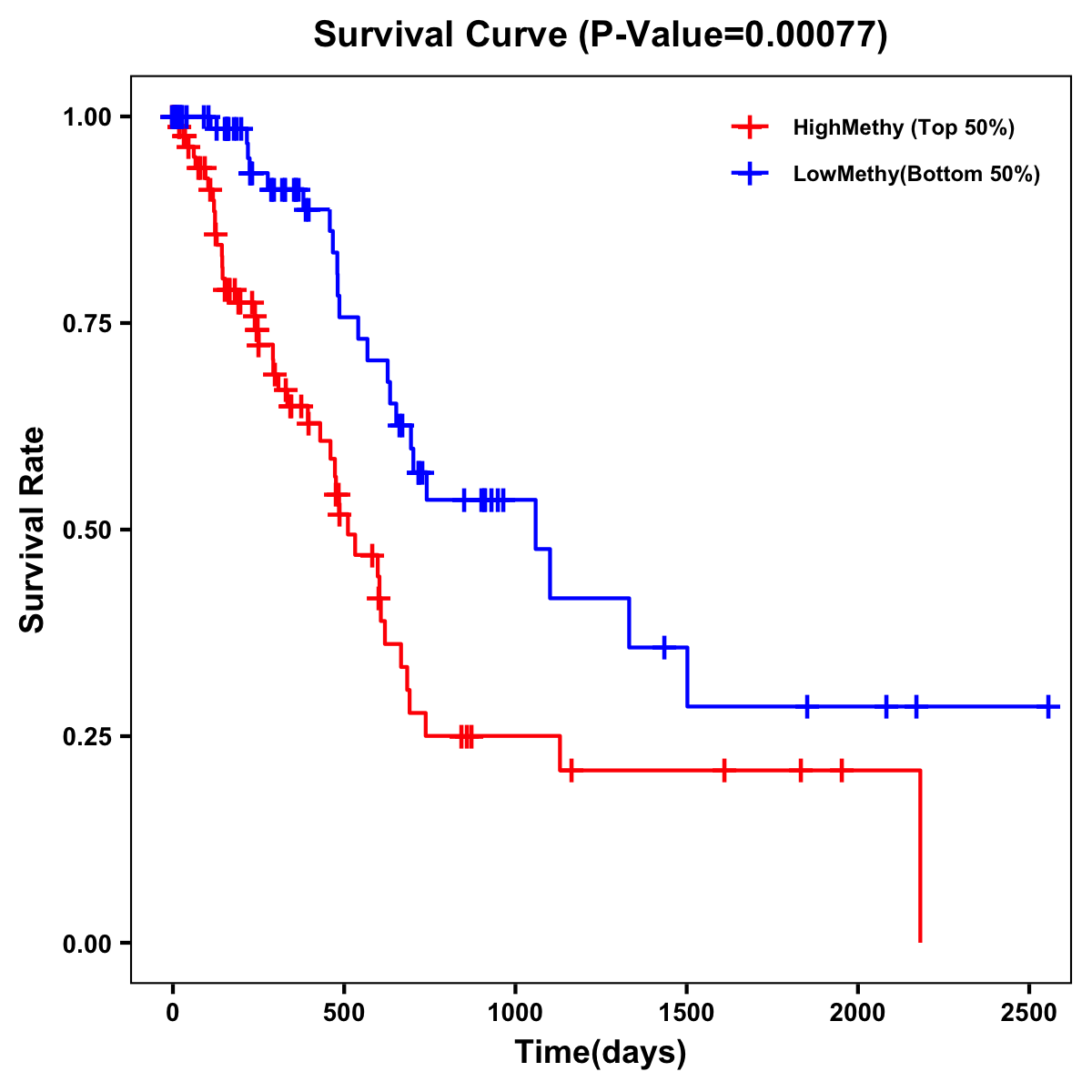 | Survival Curve of Pancreatic Cancer of Expression | Survival Curve of Pancreatic Cancer of Methylation | ||