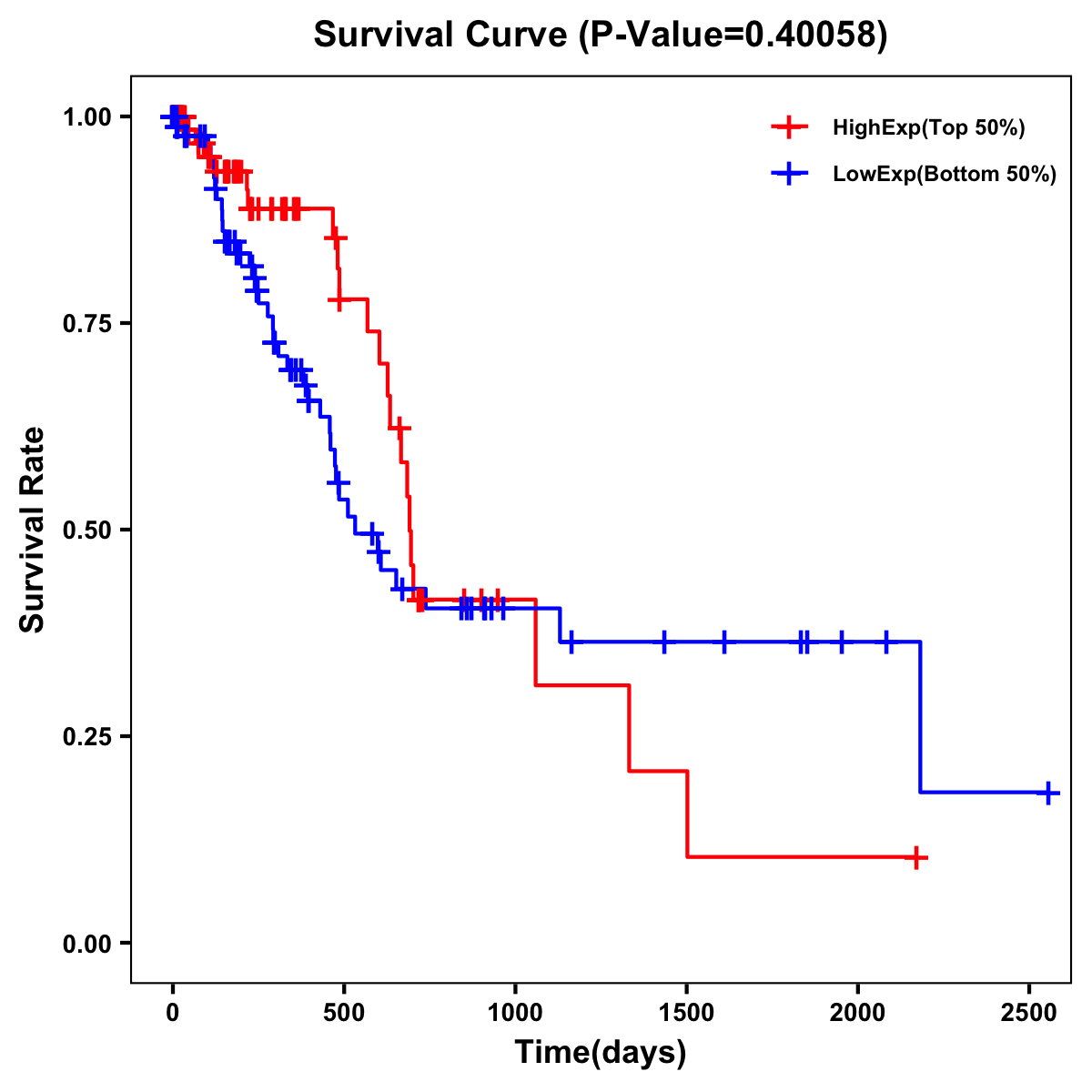 | Survival Curve of Pancreatic Cancer of Expression | Survival Curve of Pancreatic Cancer of Methylation | ||