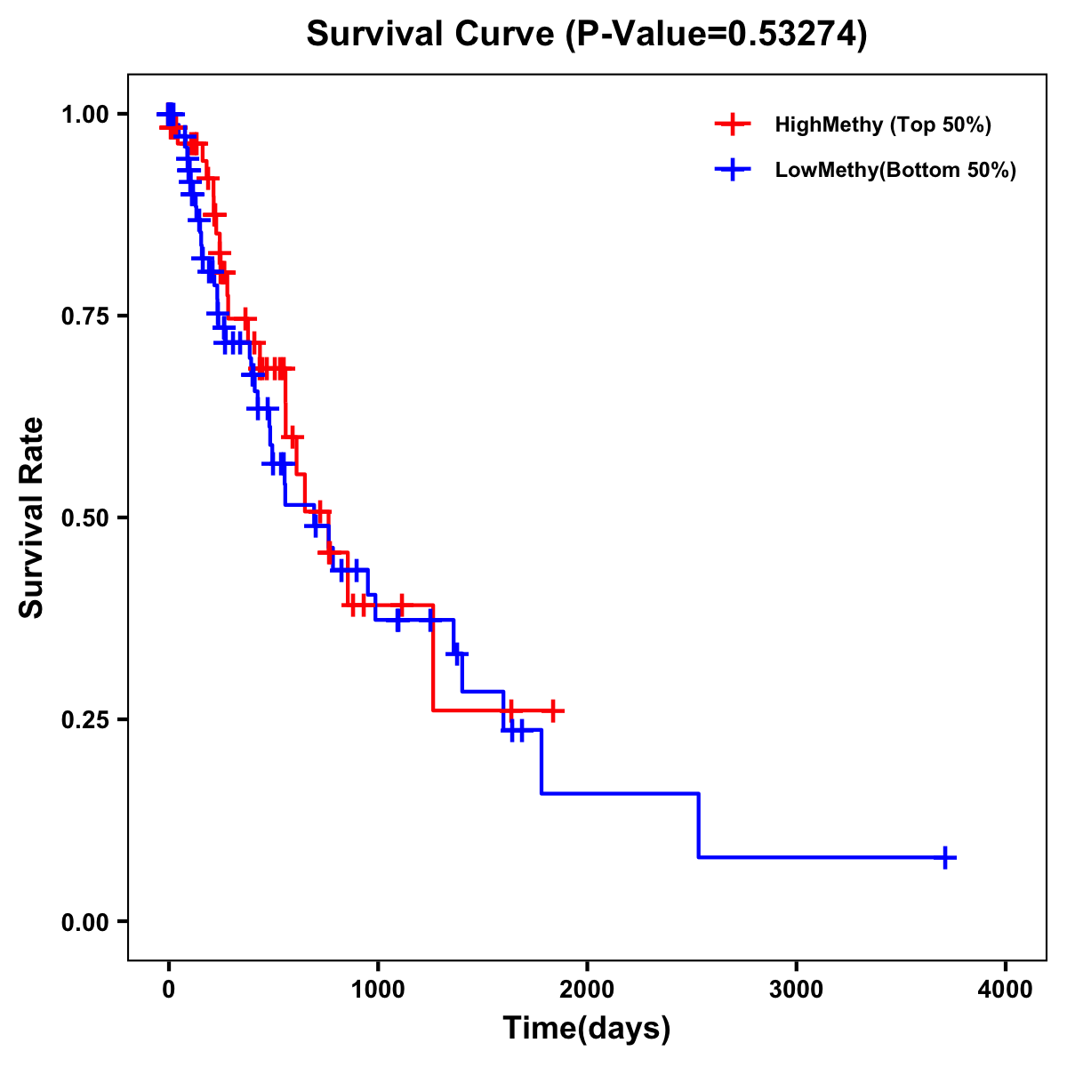 | Survival Curve of Esophagus Cancer of Expression | Survival Curve of Esophagus Cancer of Methylation | ||