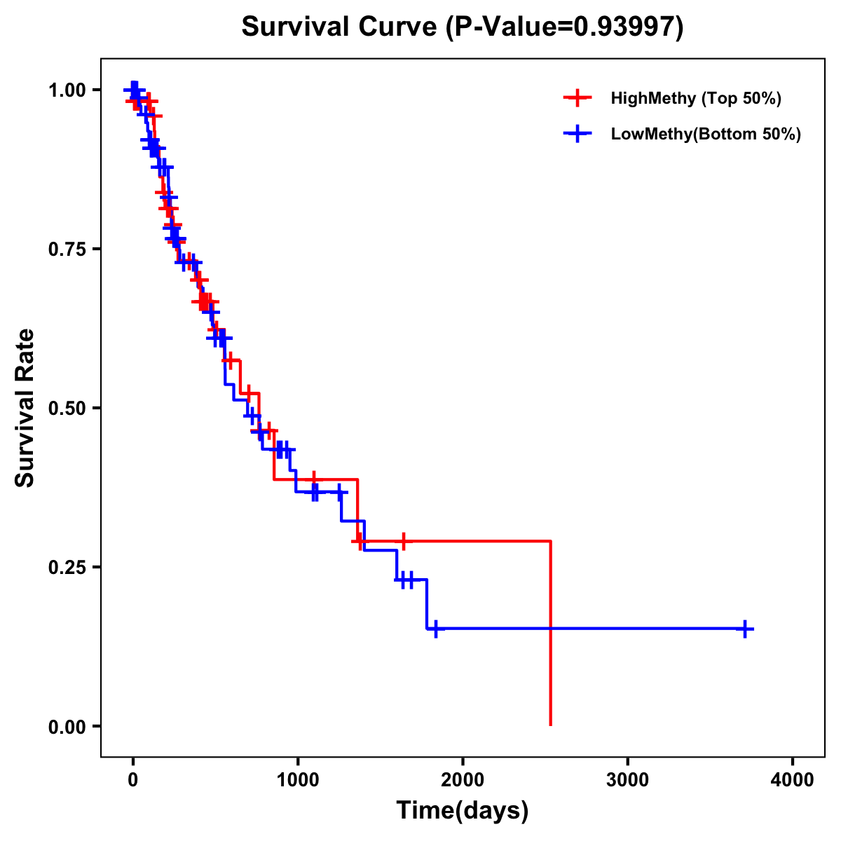 | Survival Curve of Esophagus Cancer of Expression | Survival Curve of Esophagus Cancer of Methylation | ||