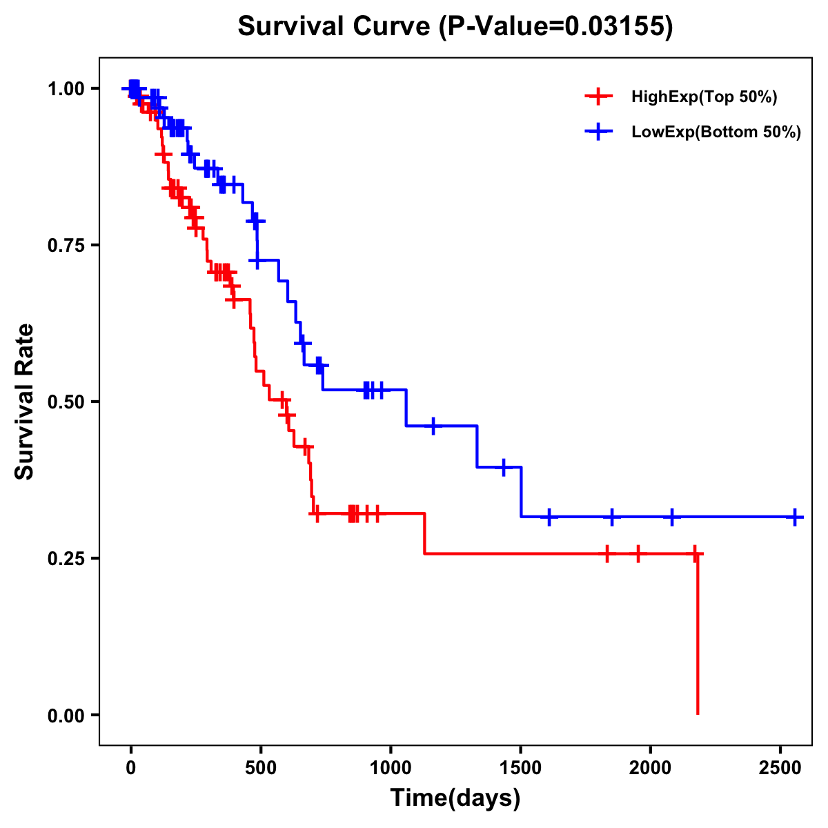 | Survival Curve of Pancreatic Cancer of Expression | Survival Curve of Pancreatic Cancer of Methylation | ||