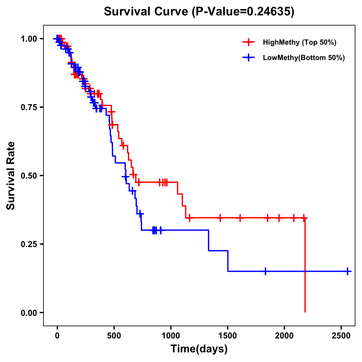 | Survival Curve of Pancreatic Cancer of Expression | Survival Curve of Pancreatic Cancer of Methylation | ||