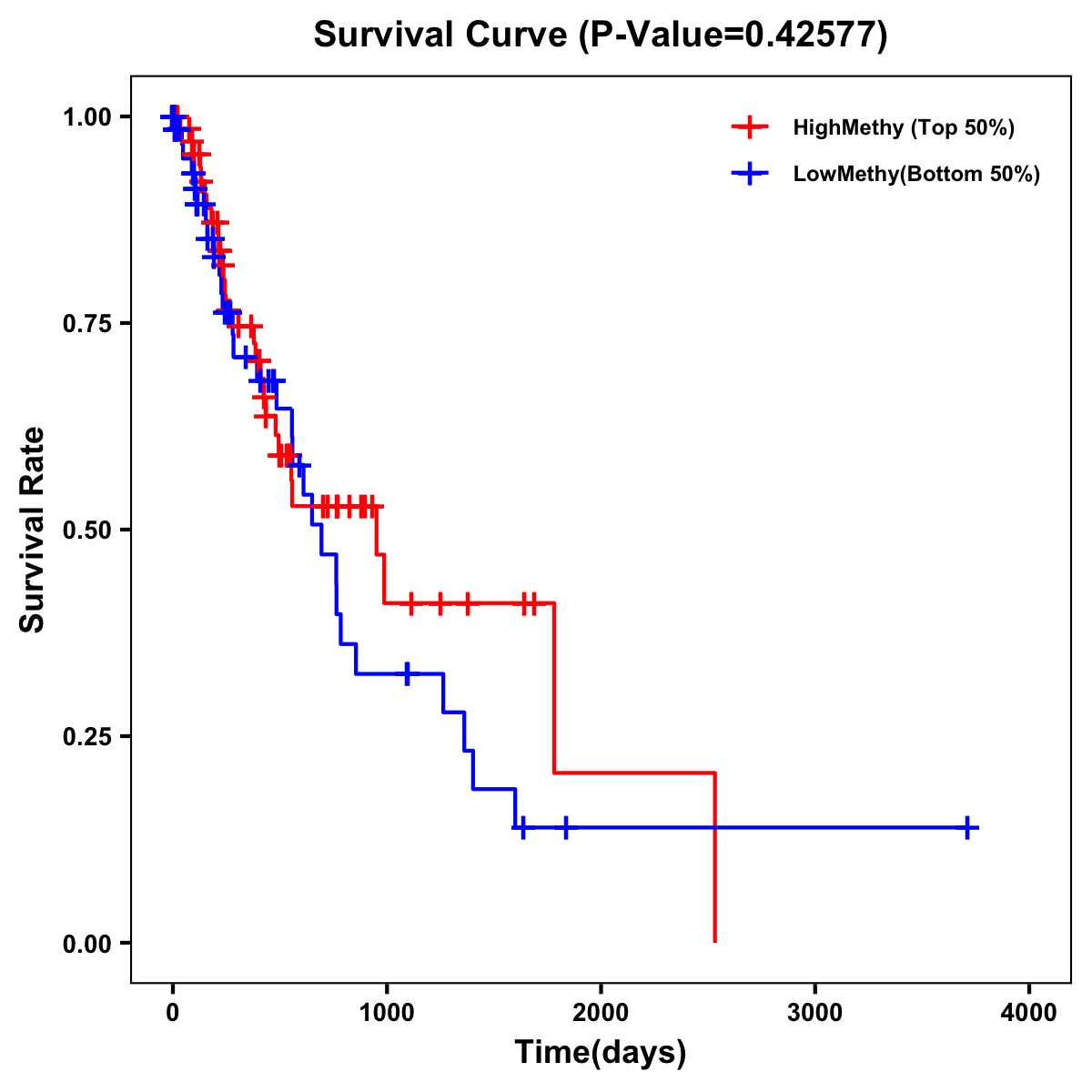 | Survival Curve of Esophagus Cancer of Expression | Survival Curve of Esophagus Cancer of Methylation | ||