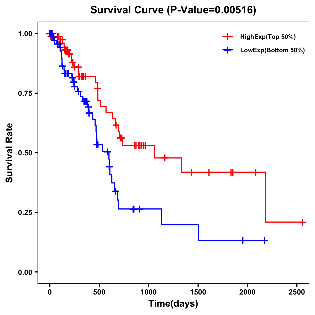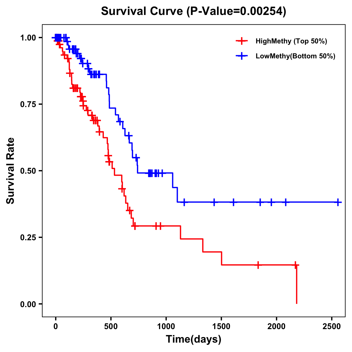 | Survival Curve of Pancreatic Cancer of Expression | Survival Curve of Pancreatic Cancer of Methylation | ||