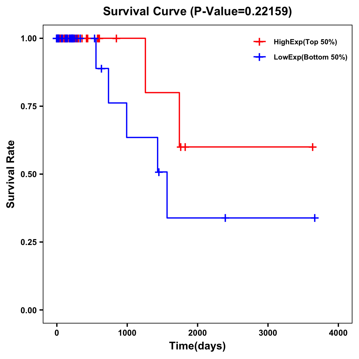 | Survival Curve of Colon Cancer on Expression Level |