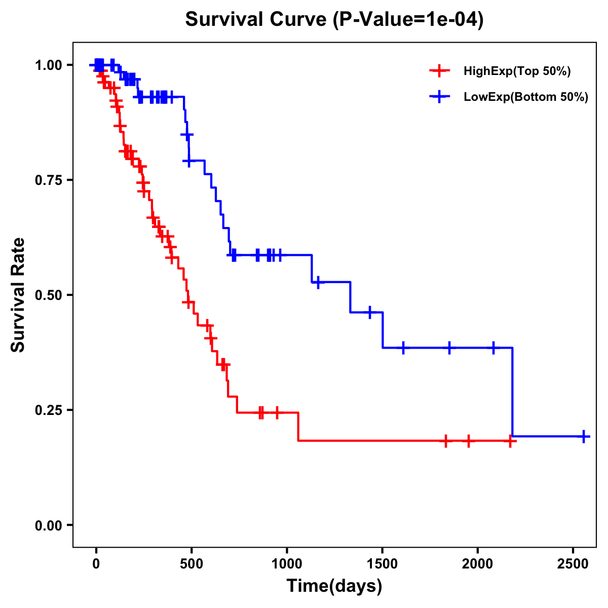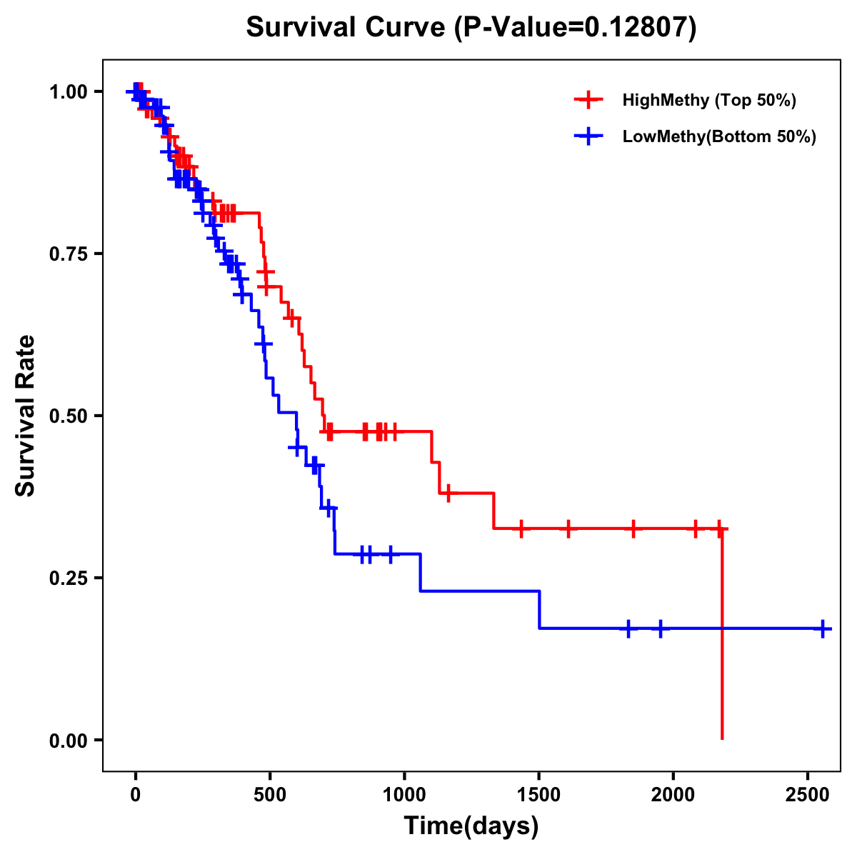 | Survival Curve of Pancreatic Cancer of Expression | Survival Curve of Pancreatic Cancer of Methylation | ||