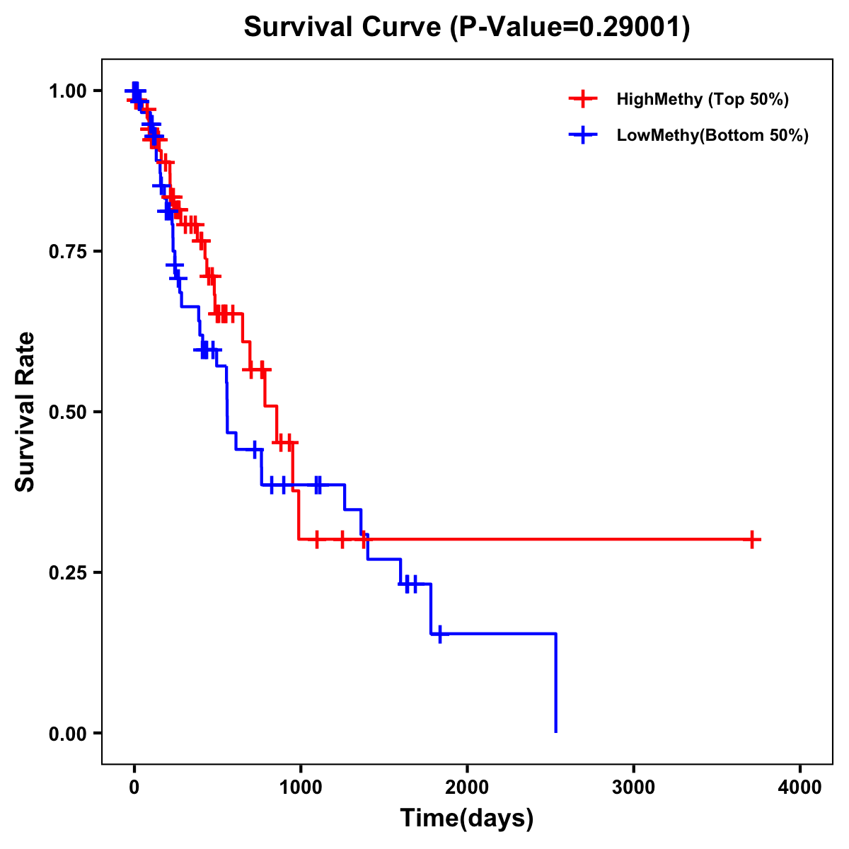 | Survival Curve of Esophagus Cancer of Expression | Survival Curve of Esophagus Cancer of Methylation | ||