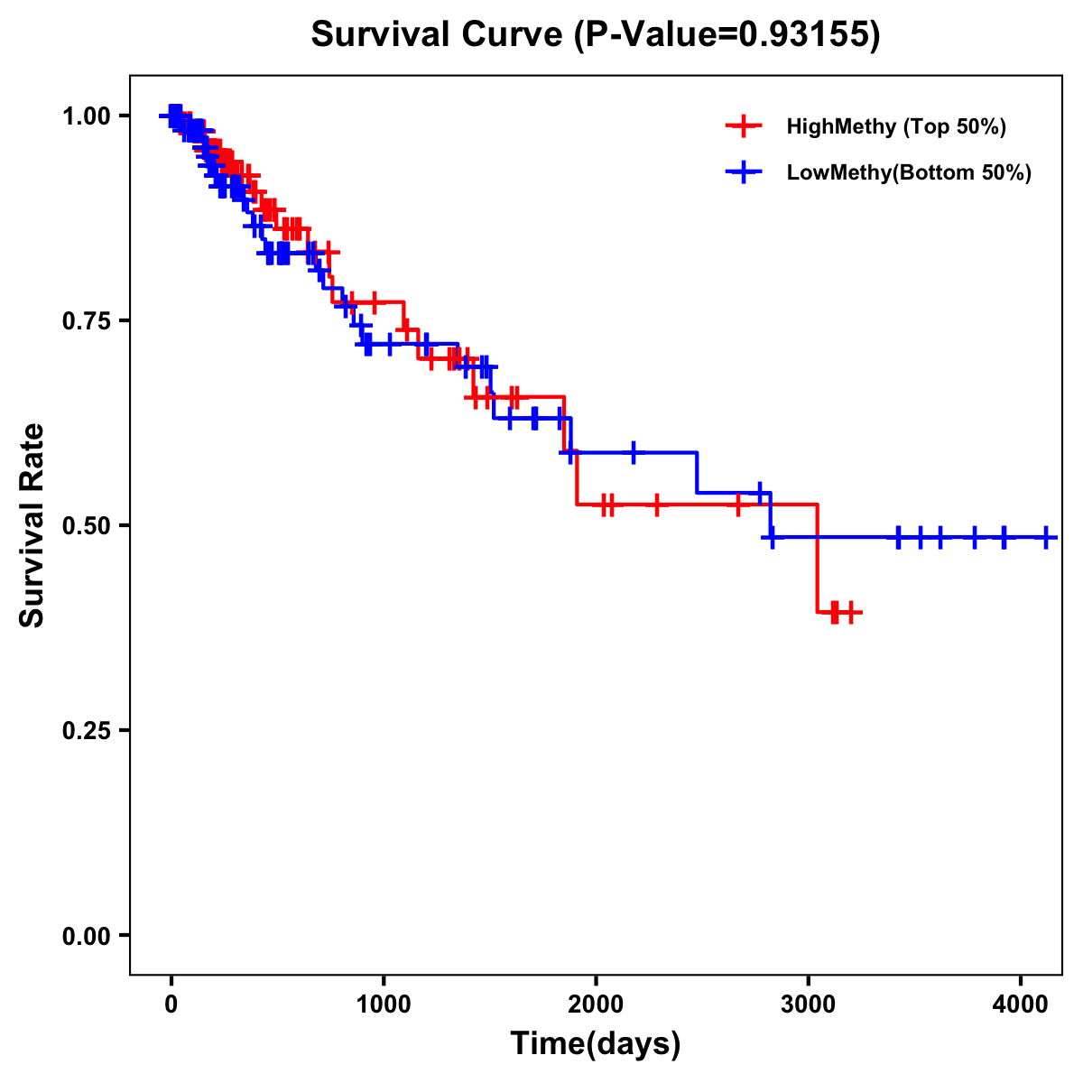 | Survival Curve of Colon Cancer on Methylation Level |