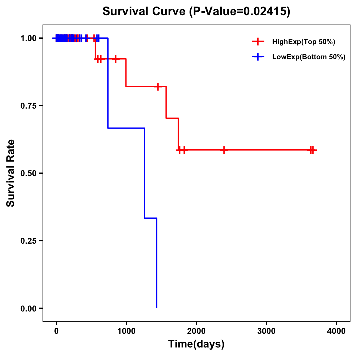 | Survival Curve of Colon Cancer on Expression Level |
