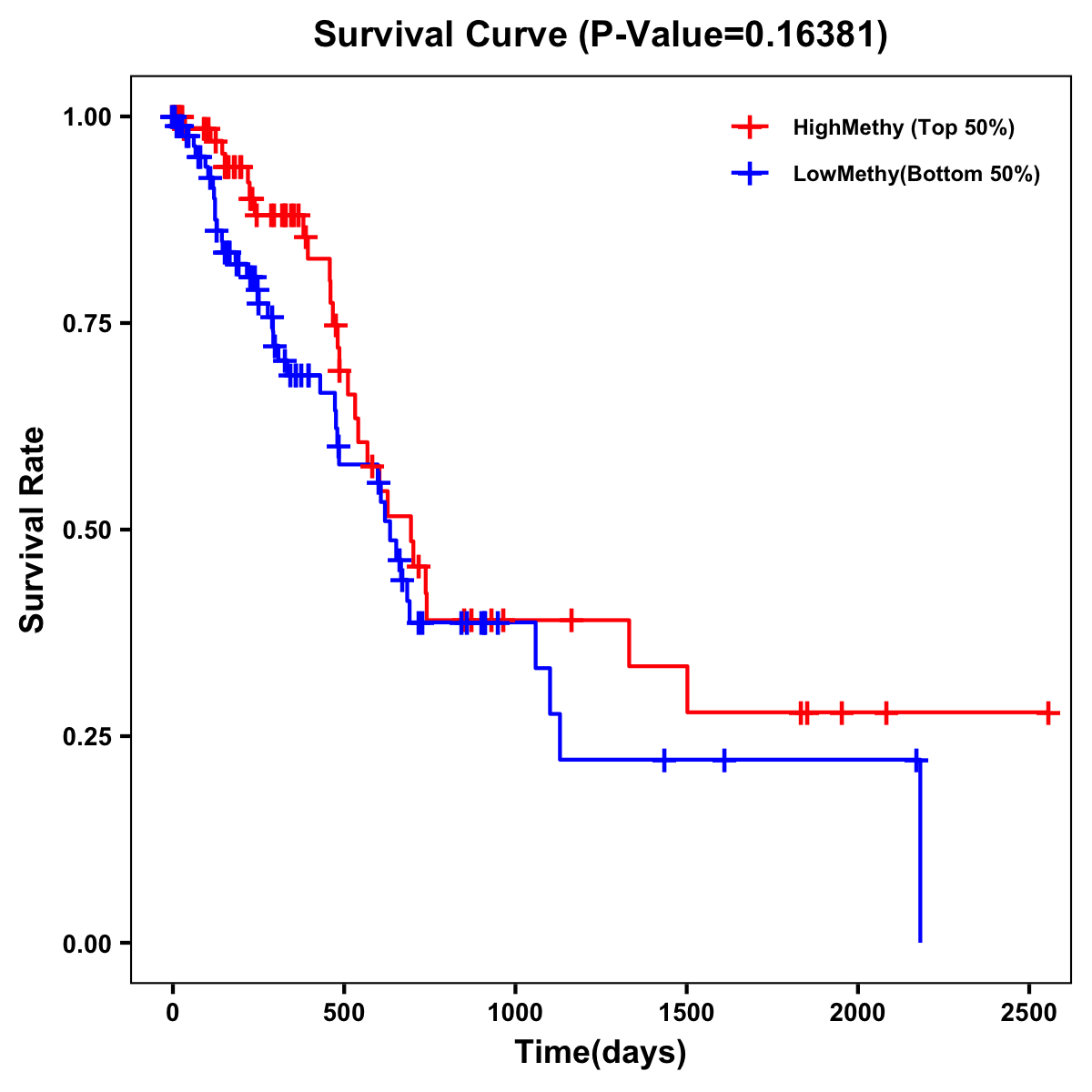 | Survival Curve of Pancreatic Cancer of Expression | Survival Curve of Pancreatic Cancer of Methylation | ||