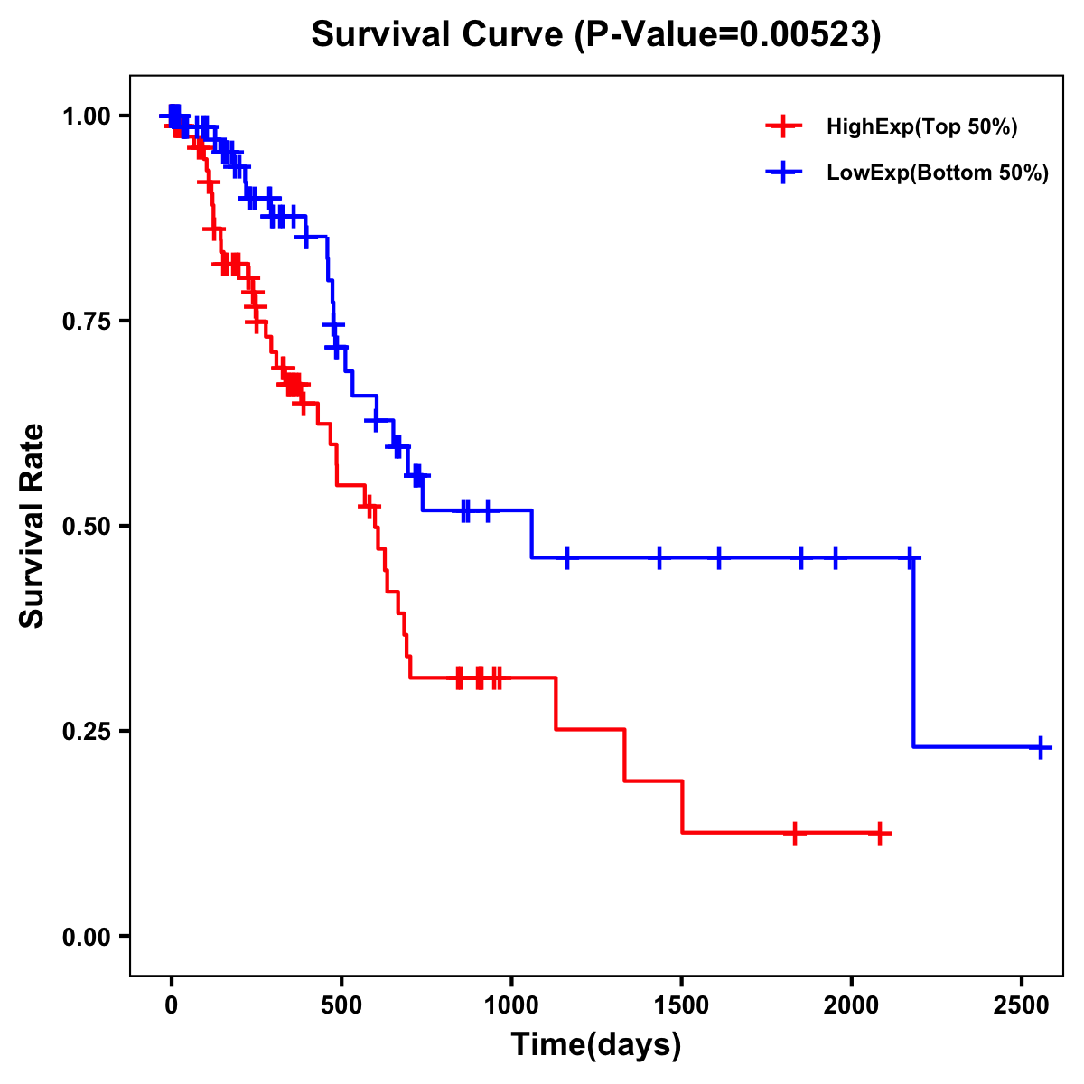 | Survival Curve of Pancreatic Cancer of Expression | Survival Curve of Pancreatic Cancer of Methylation | ||