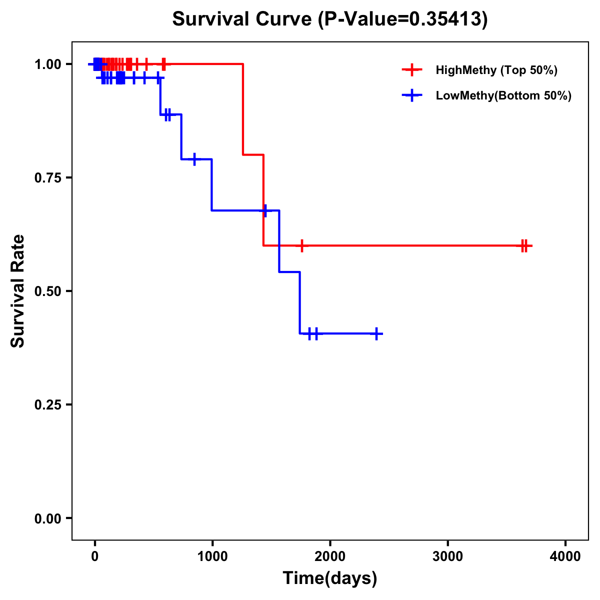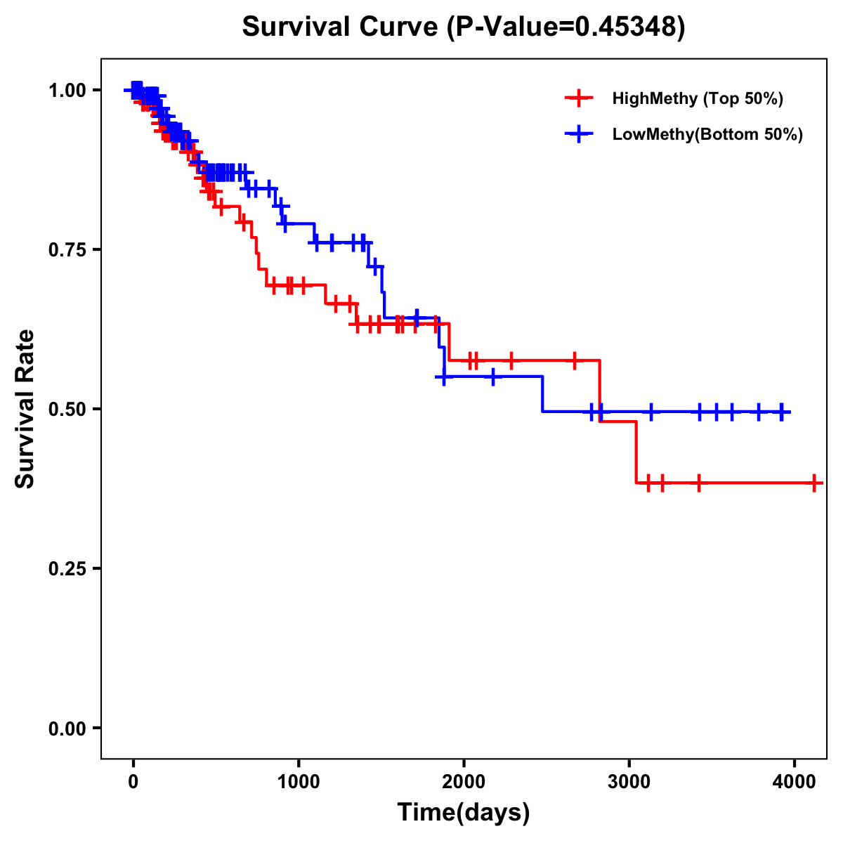 | Survival Curve of Colon Cancer on Methylation Level |