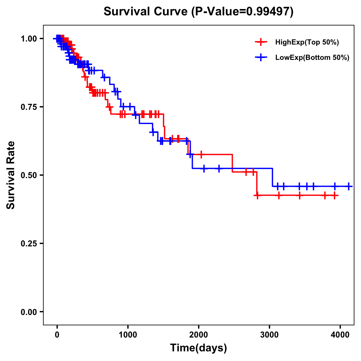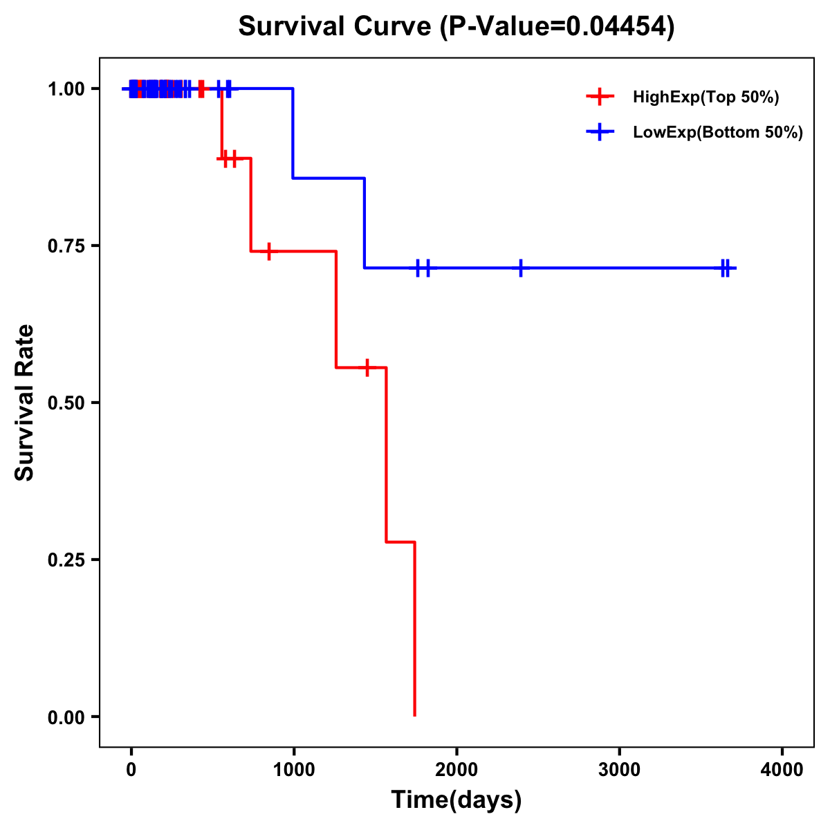 | Survival Curve of Colon Cancer on Expression Level |