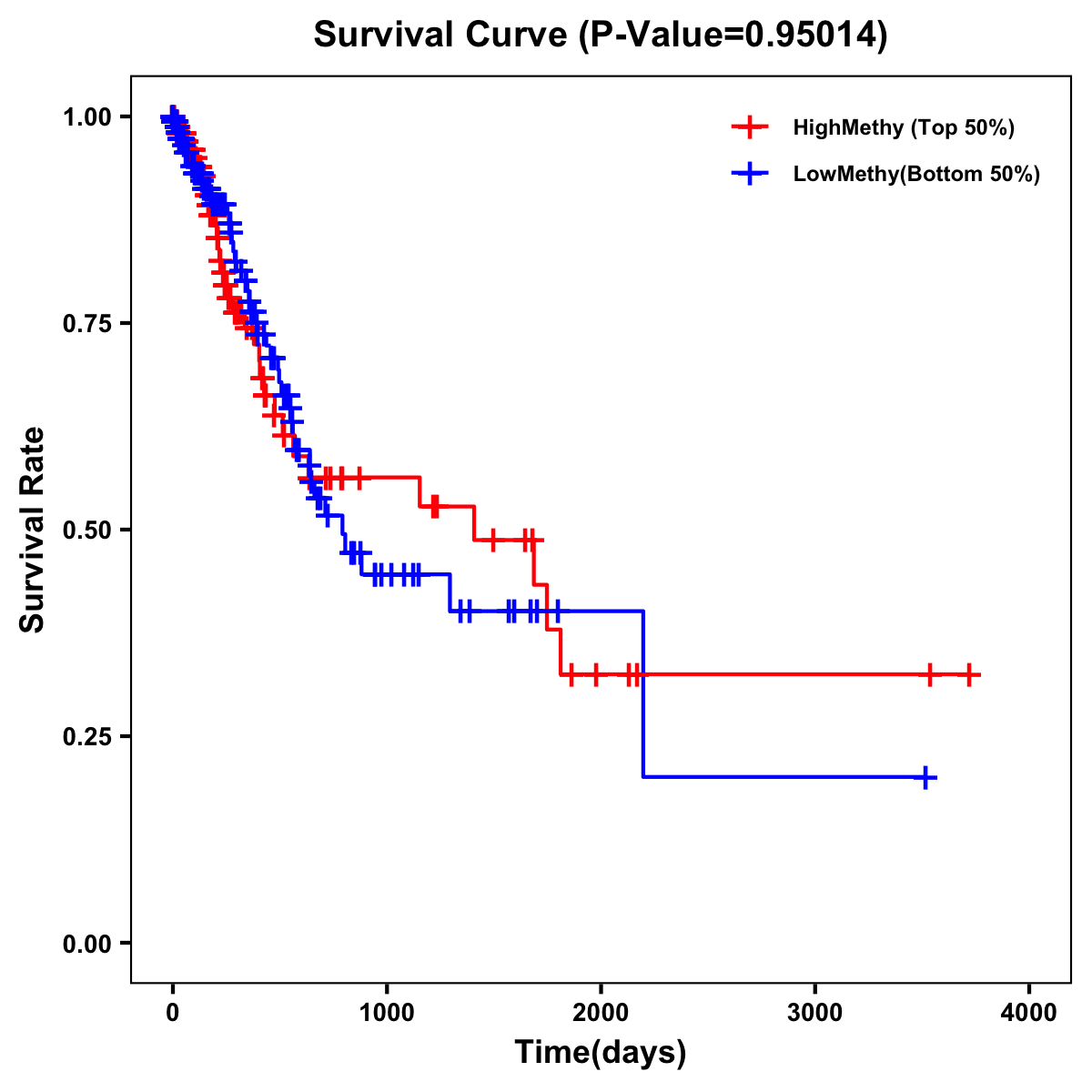 | Survival Curve of Stomach Cancer of Expression | Survival Curve of Stomach Cancer of Methylation | ||