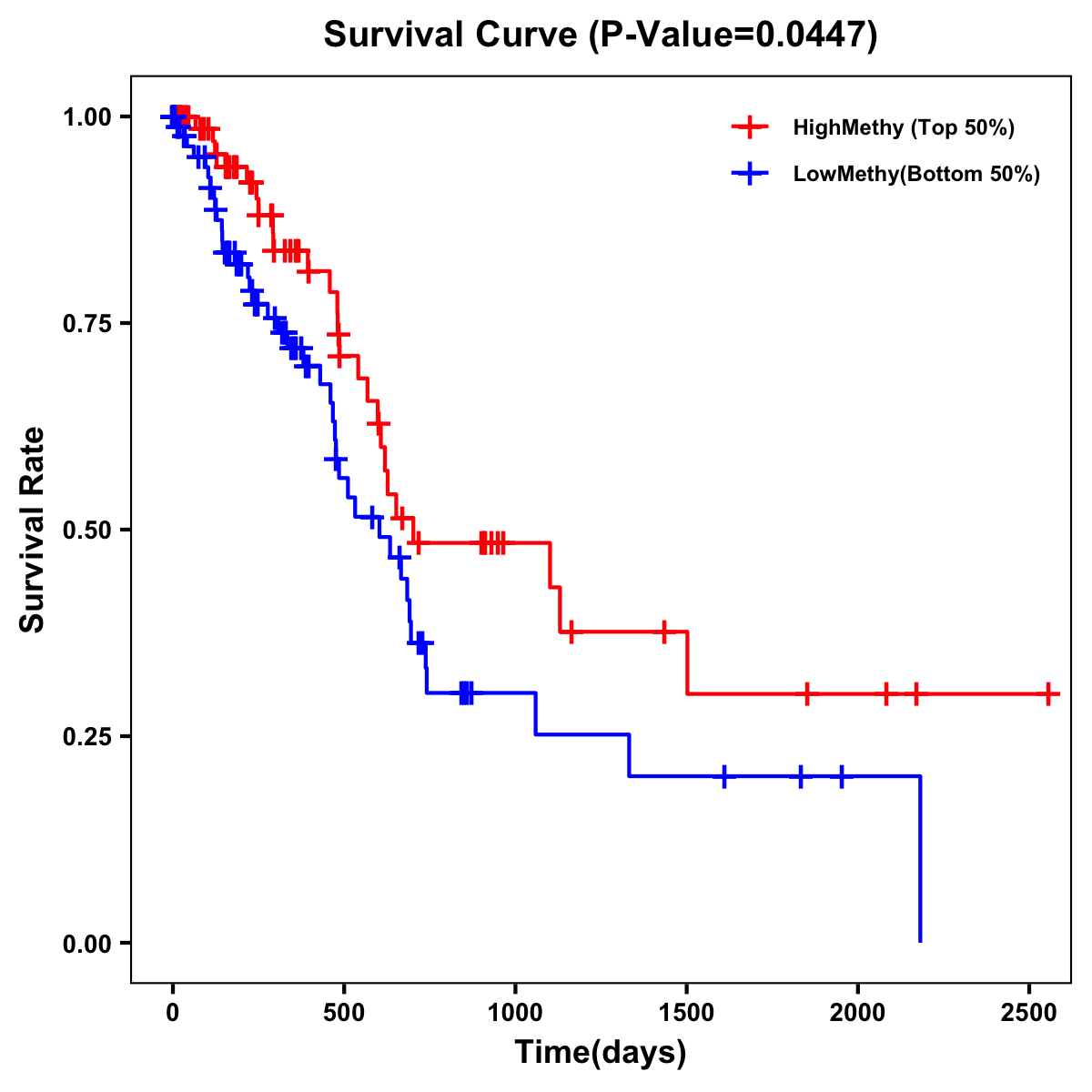 | Survival Curve of Pancreatic Cancer of Expression | Survival Curve of Pancreatic Cancer of Methylation | ||