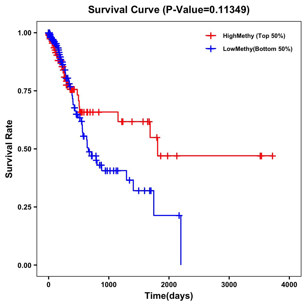 | Survival Curve of Stomach Cancer of Expression | Survival Curve of Stomach Cancer of Methylation | ||
